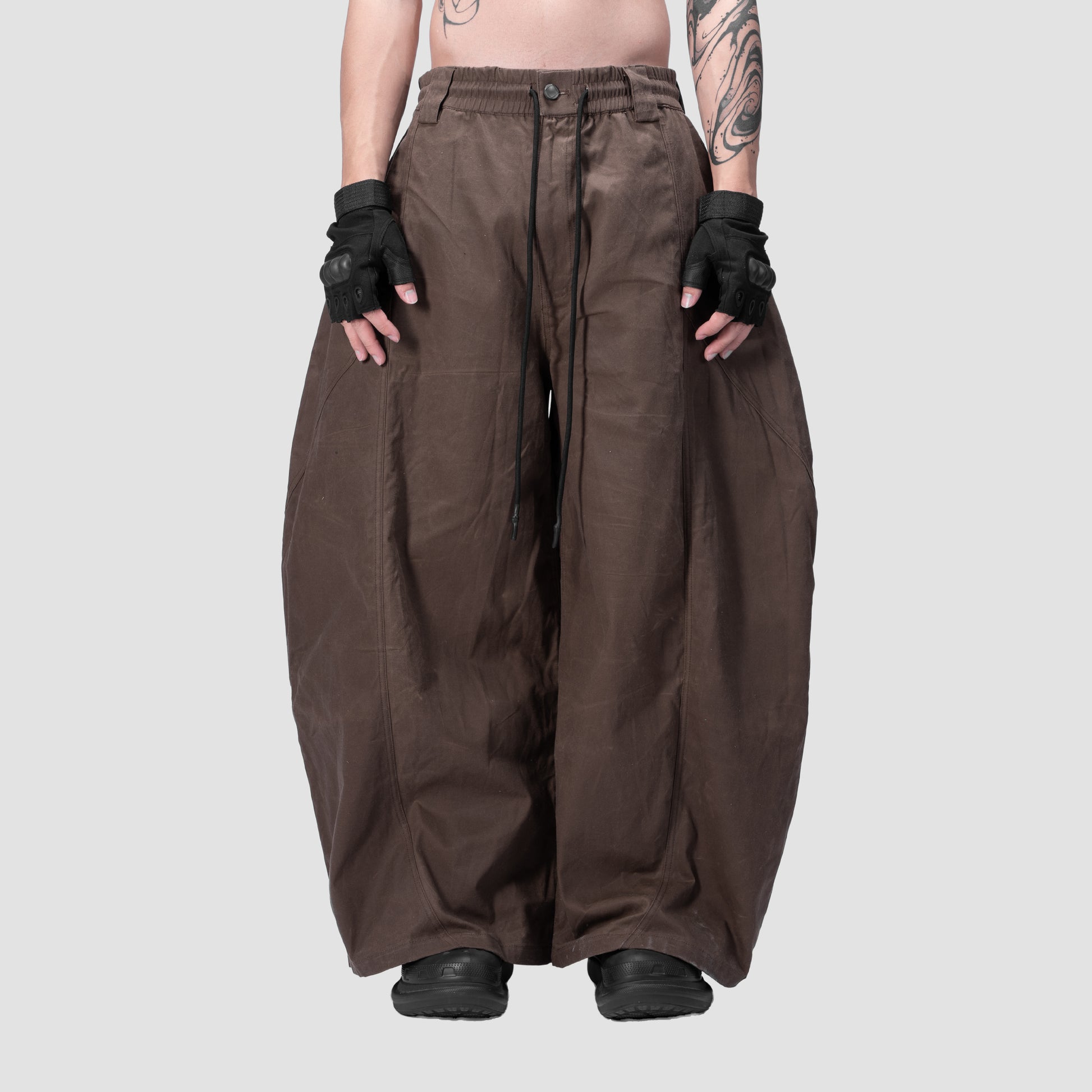 SPLIT CURVE PANTS - BROWN